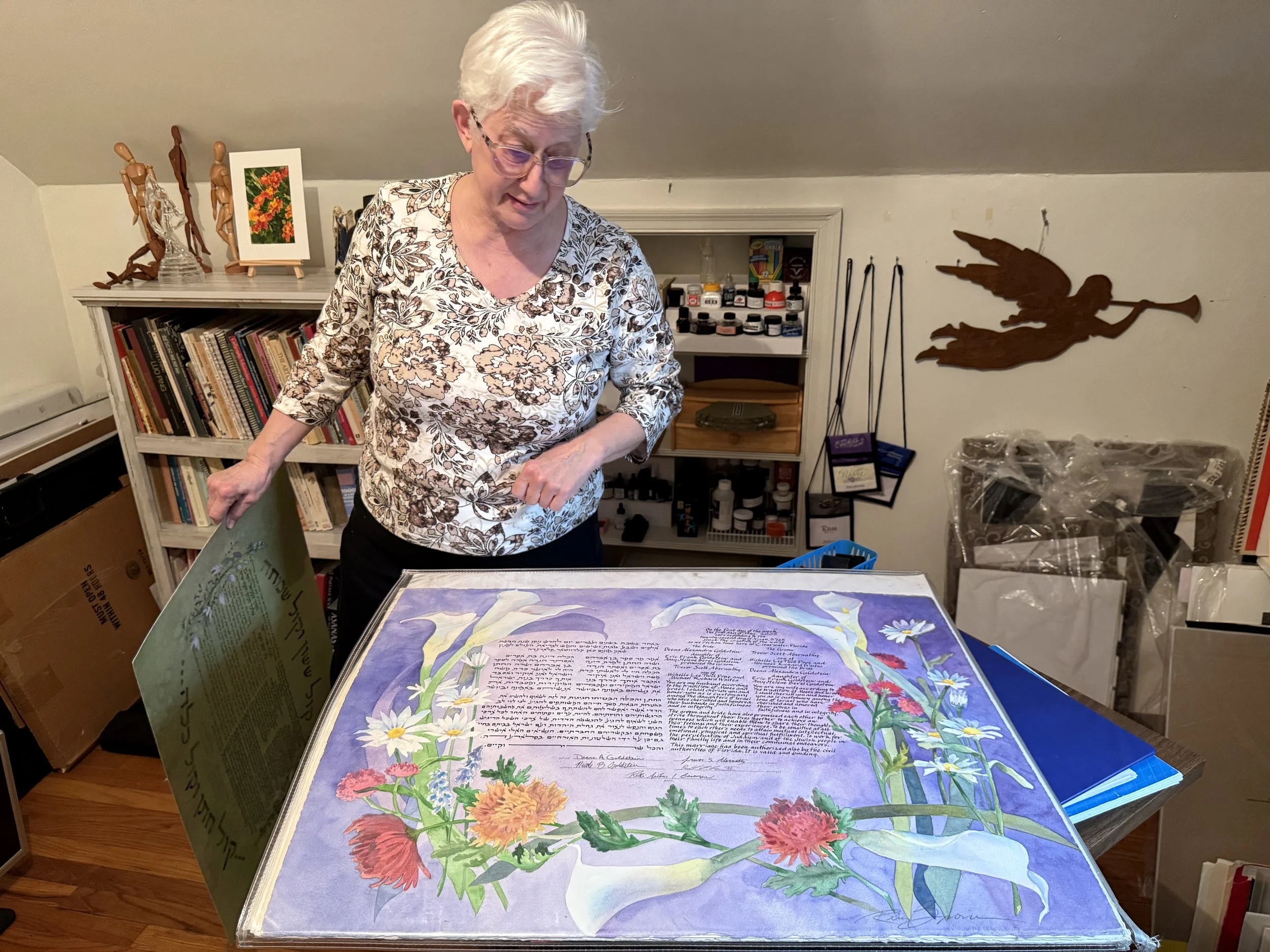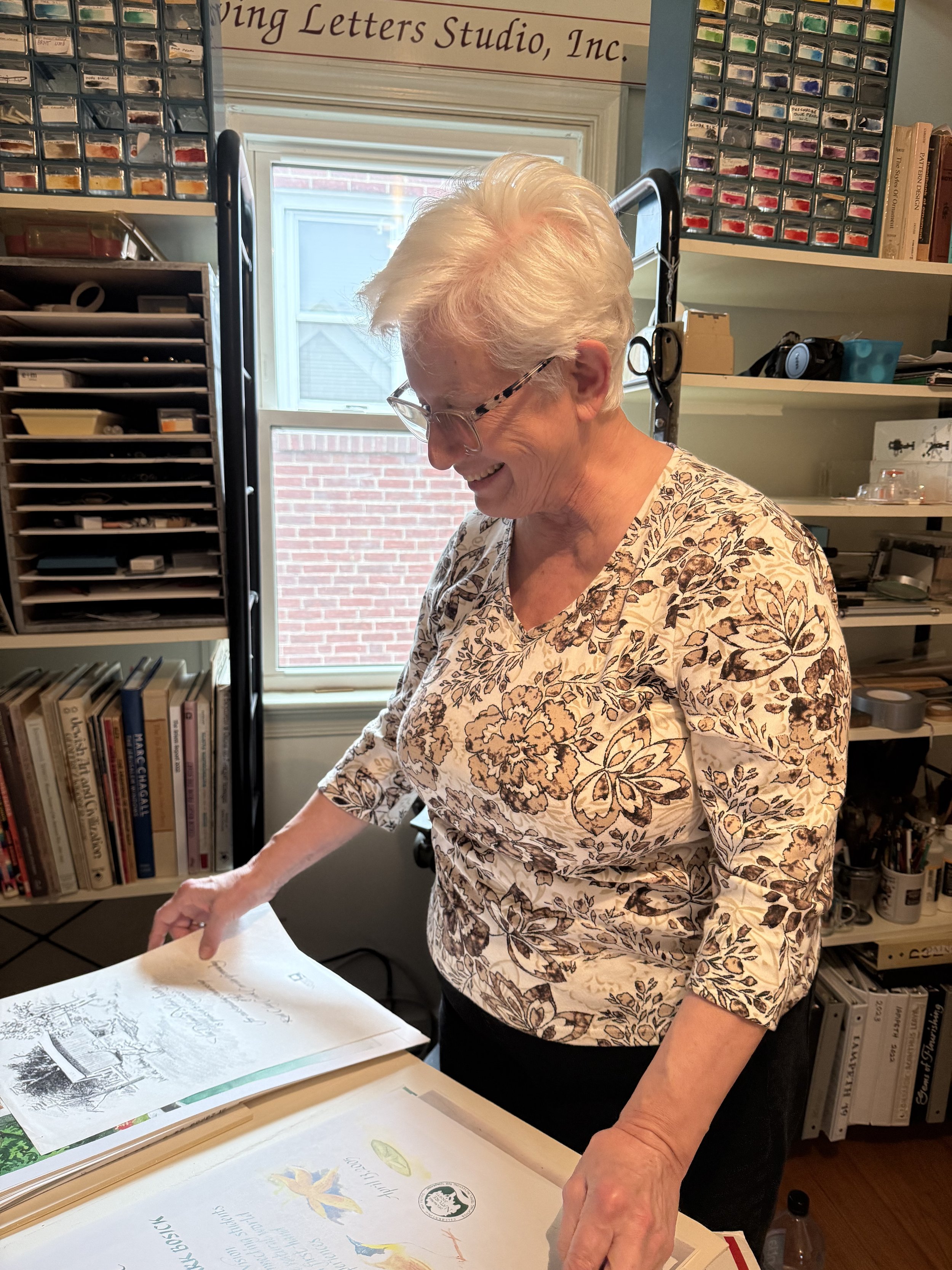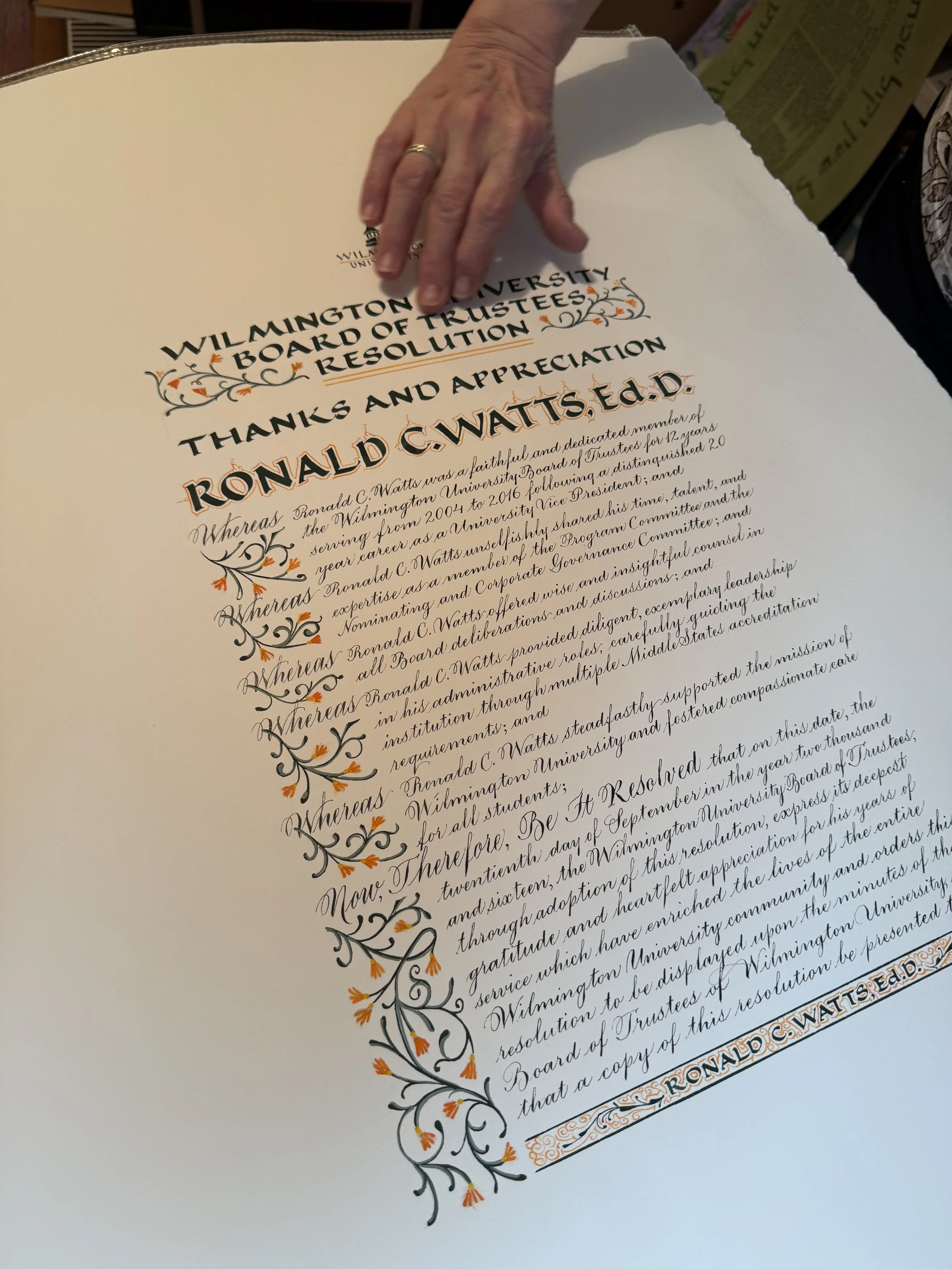 I spent time with newly retired Delaware calligrapher, Riva Brown—which was not a live event, but an event just the same. She showed me so many of her perfectly beautiful pieces that combined art and calligraphy so seamlessly that it re-inspired me all over again for this craft we love.